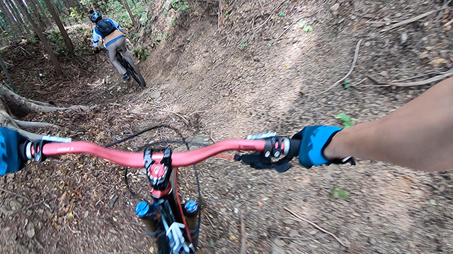 午後からは同山の正反対の南降り峠道を征く。お馴染みのルートであるがお仲間新鋭機の挙動テストには最適なトレイルである。同エリアでは乗車率がすこぶる高く路面バリエーションが豊かで飽きさせない。速度域の高いルートでもありブレーキ握力の限界ギリギリで大気圏突入すべくイメージがある。皆かつてよりも新鋭機に乗りその性能に助けられているに違いないが、これからも山活動継続するにありがたく扱いたく思うものである。