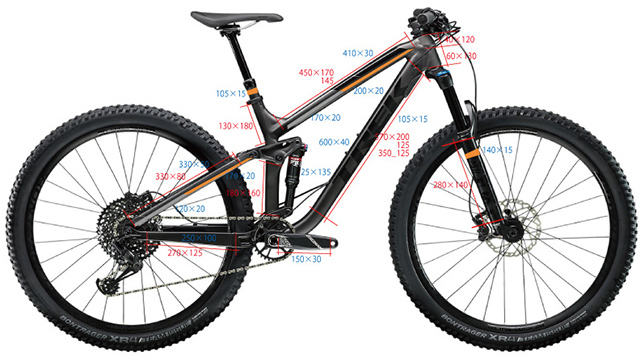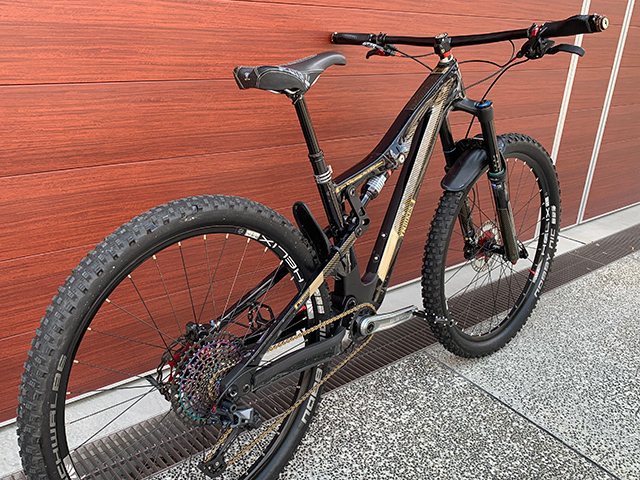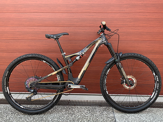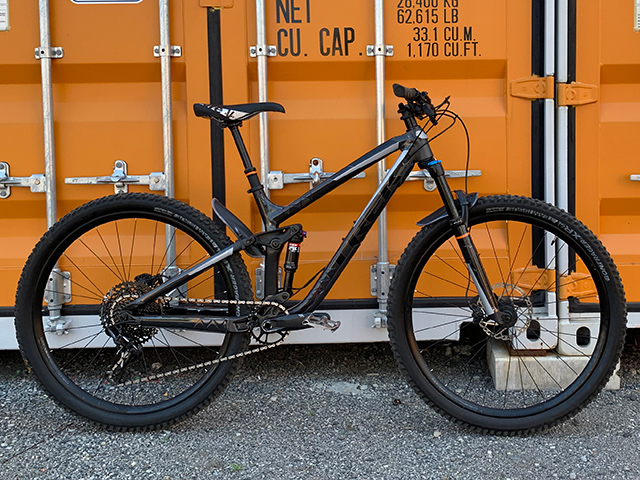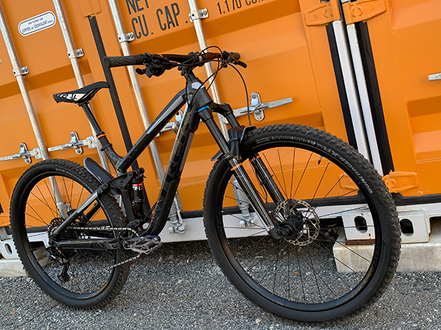 ▲施術前TREK Fuel EX8モデル。マットブラックでクールながら個性をつけたく作業後が以下に。
