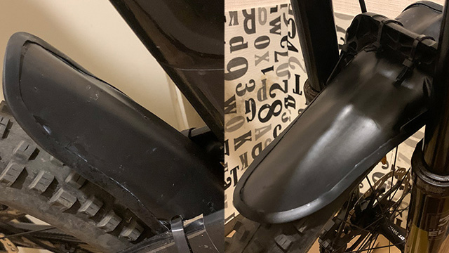 ▲かつて作った平版フェンダーは割れやすかったが当素材は柔軟で割れにくい樹脂製だ。