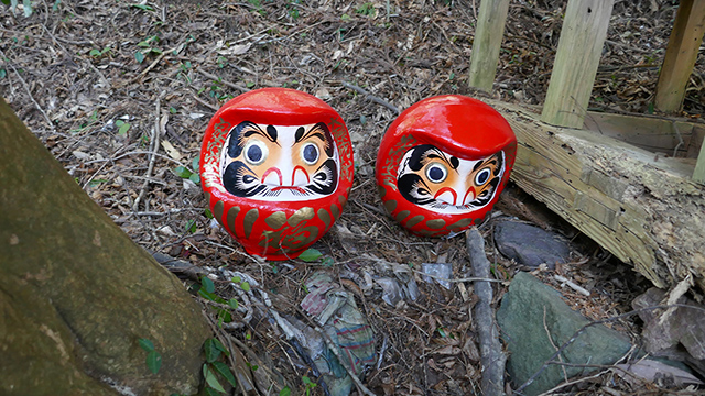 長い尾根縦走を経て竹林風情豊かな山寺を辿るがここはいつ来ても気持ちが和む。日本人であることの安堵を感じるのである。そして再び長い尾根先に乗っ越し縦走を続ける。小上りを繰り返しては降りアタックを繰り返し、気力維持の修験道のごとくスキルを試されゆく。最終分岐からはジャングル的豪快降りの支尾根に乗り換えゆく。これまでの修行で鍛えられ褒美の悦楽降りである。まあ途中藪に突っ込んだり、太枝刺さりにあったりドタバタしながらも愉快が続いた。ズッコケながらも体験の質が高い充実感溢れる10km縦走であった。