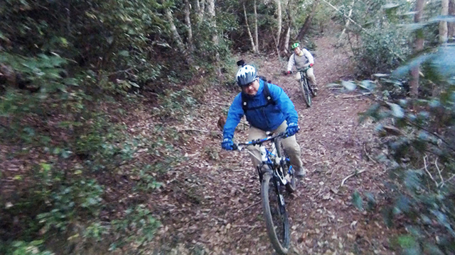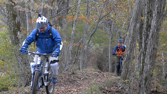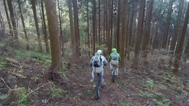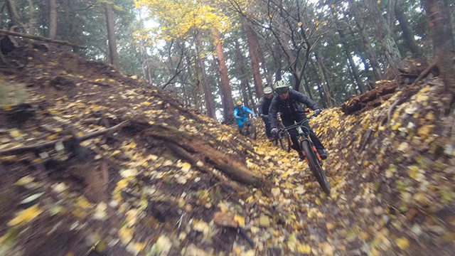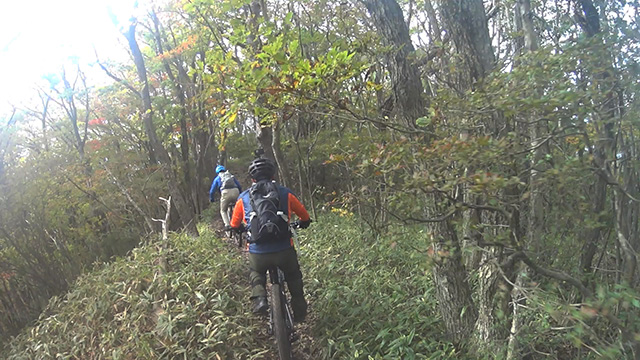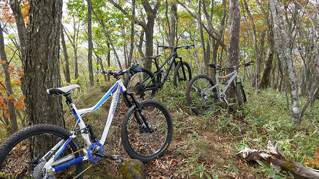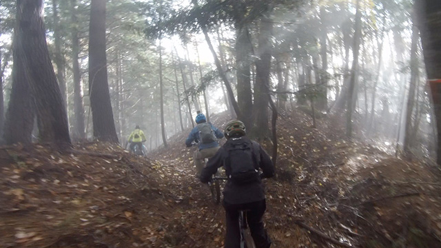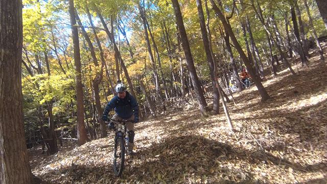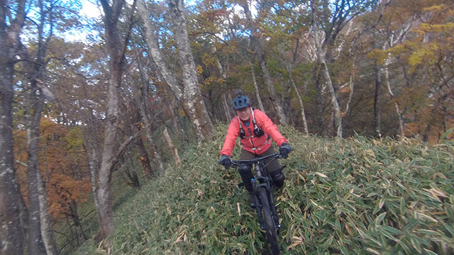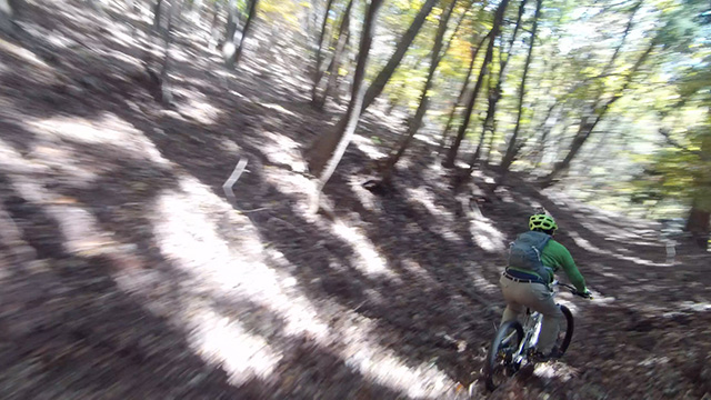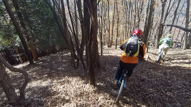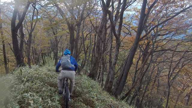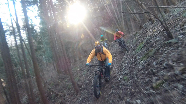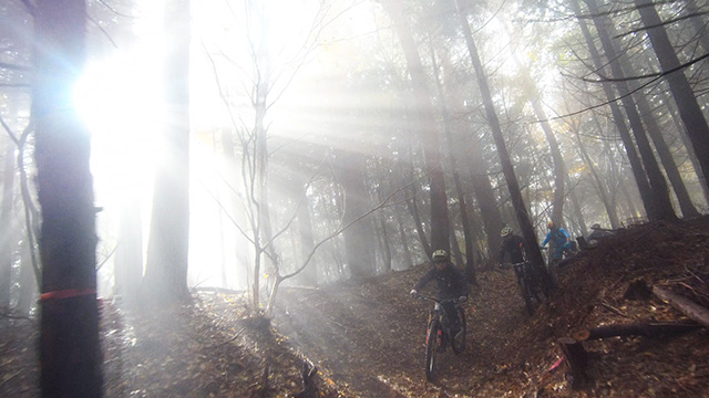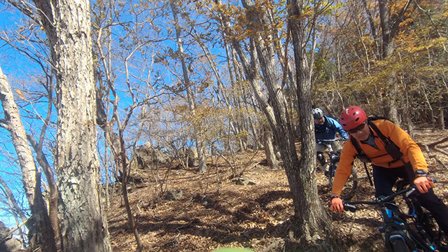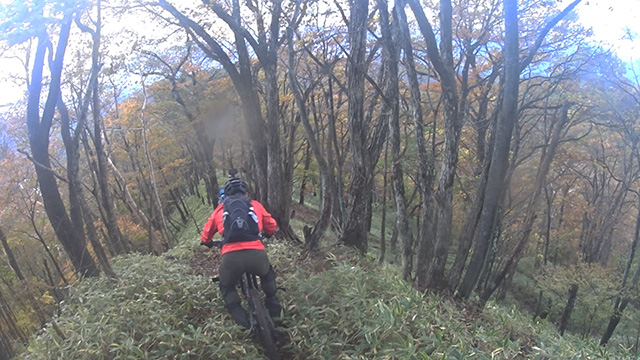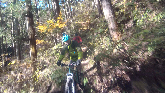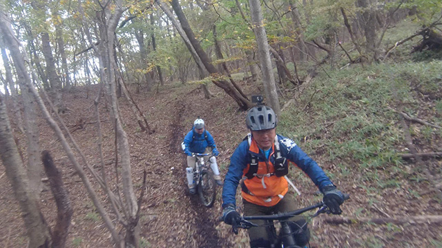 11/8同山系にてWトレイルを駆けたが、タイムアップで3つ目のトレイルに行けなかった。標高900m級峠より第1ルートは群馬側への緩傾斜な降下と沢路下りで冷えた体を暖気運転する。この日は!0年来のお付き合いのメンバー君も久々に新バイクで現れ意気揚々と駆けられた。1日で3本ルート走破目的なので全く休みもなしに皆なれないトレイルを引っ張り回した。正午には食事を摂るが時間かかるバーナー使用煮沸調理は禁じてあくまでも時間セーブに励む。午後は同峠より埼玉側へ下って行く。