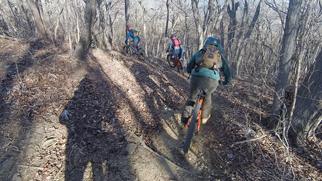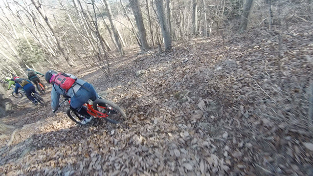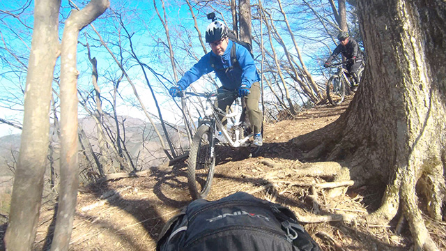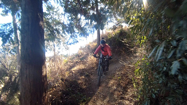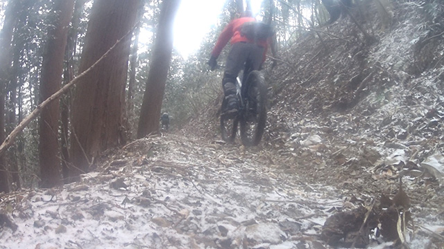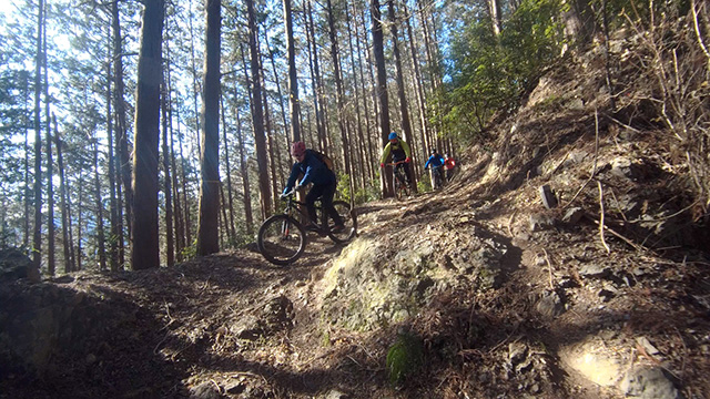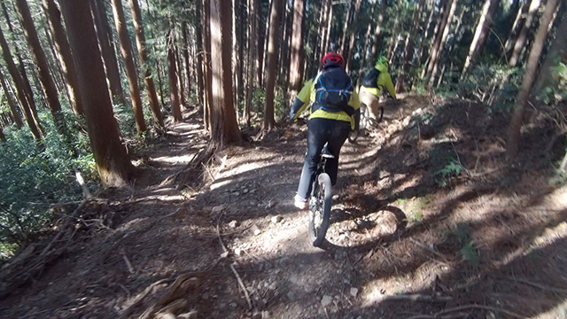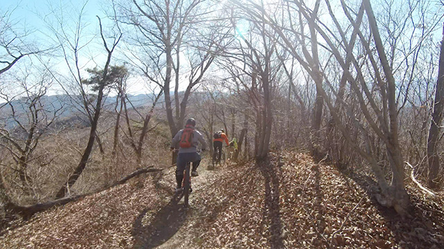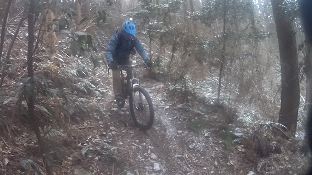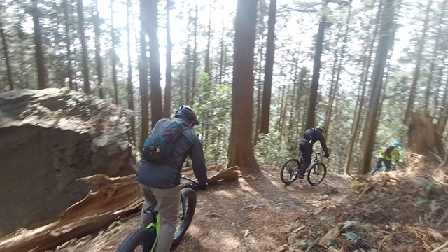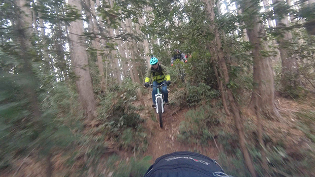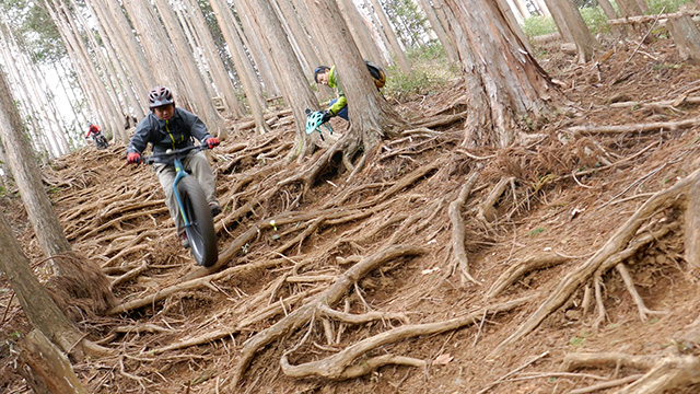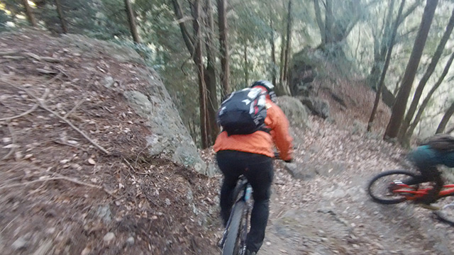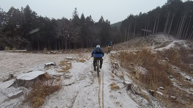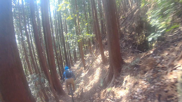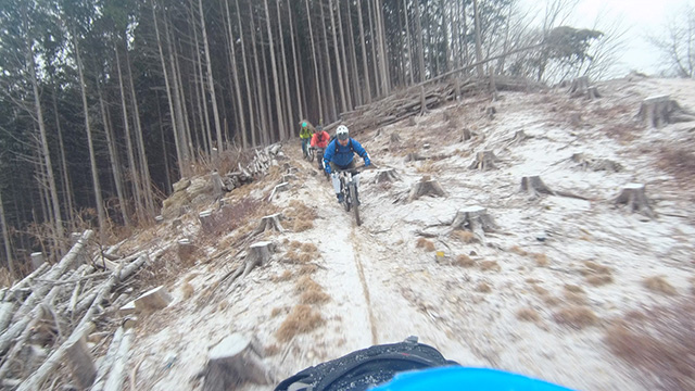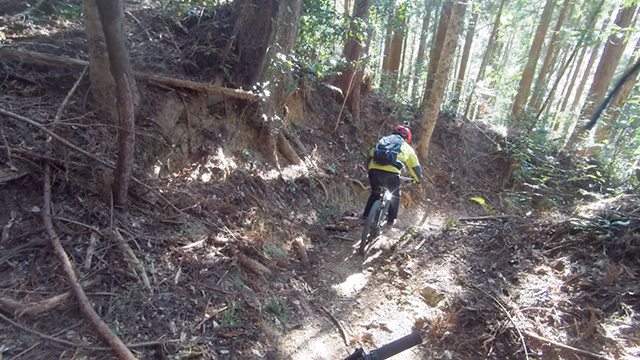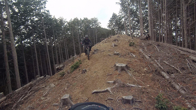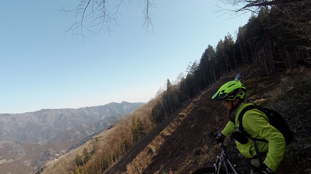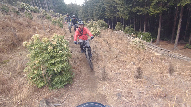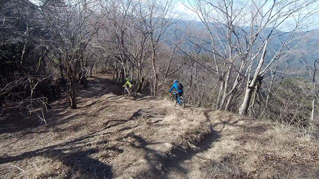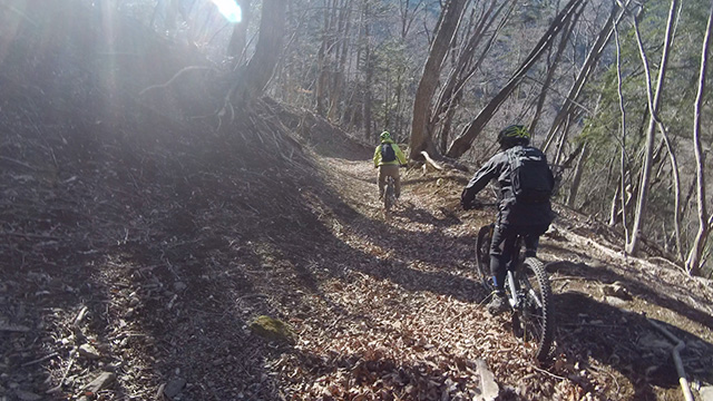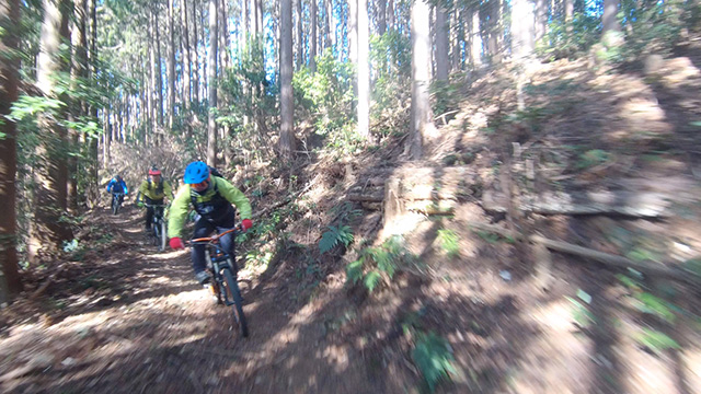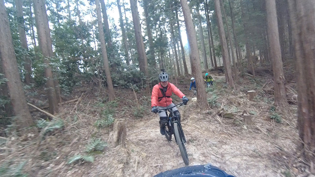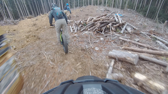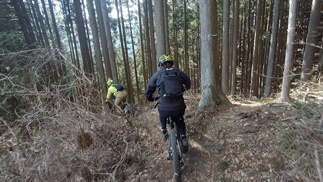 行程中盤からはテクニカルなコーナーワークが無い分いつの間にかボーッとし心地良さにニヤケながら行く。快速エリアは程々に距離はあるが乗車率高い分経過時間は短く感じる。終盤は痩せ巻道の深いキャンバー崩落気味でズリ足で進行したり、沢伝いのガレを蹴散らしたり体力気力をすり減らす思いが続く。花粉症でダウン者もあらわれ、前回修験道より気が張り勇敢なはずの隊列が伸びていった。総距離も長く路面バリエーション多様で体験密度が高い縦走であった。