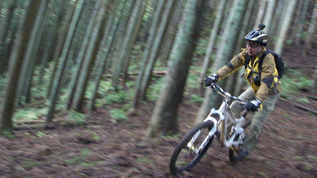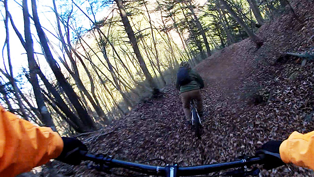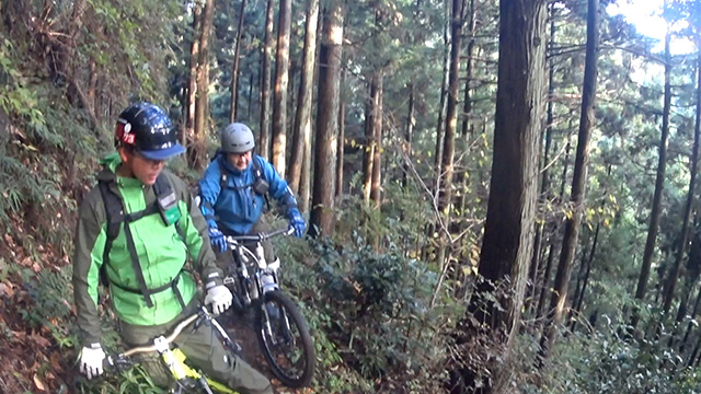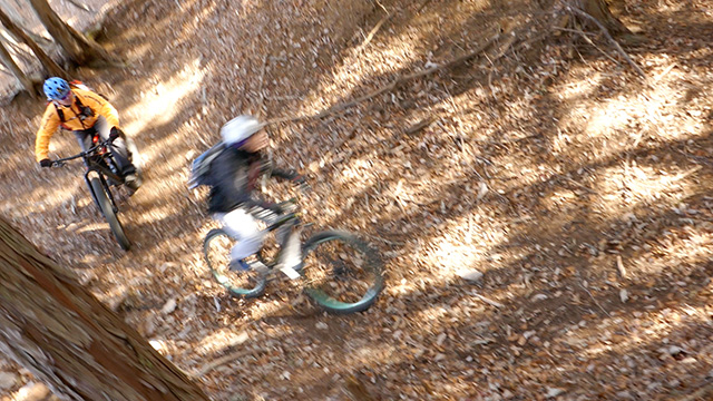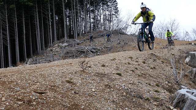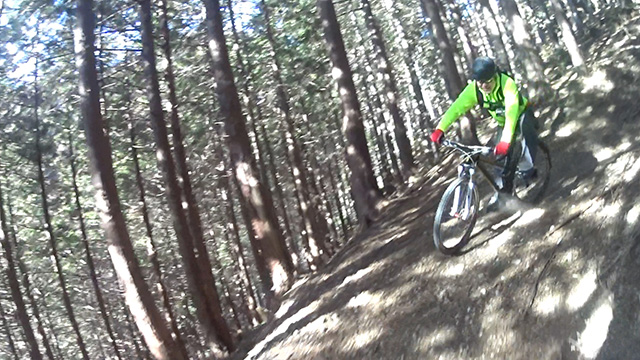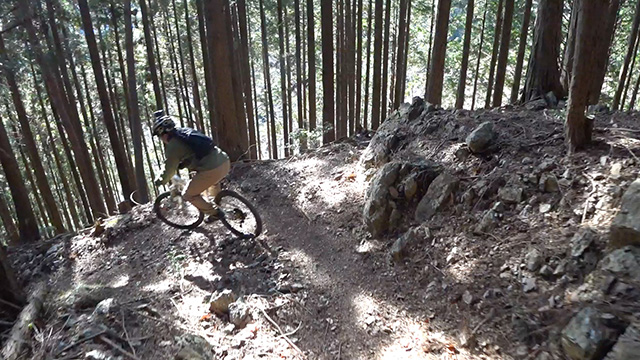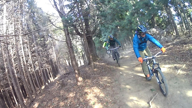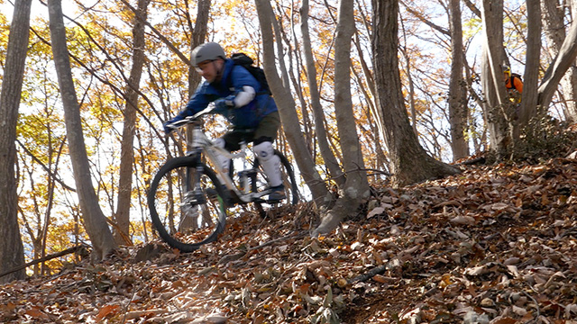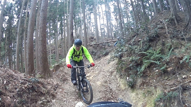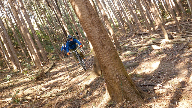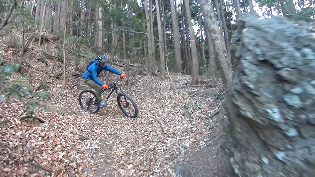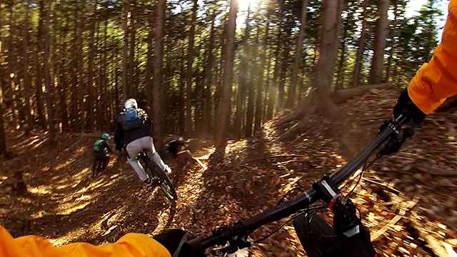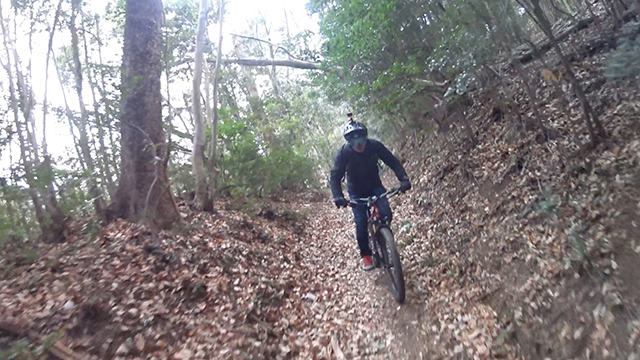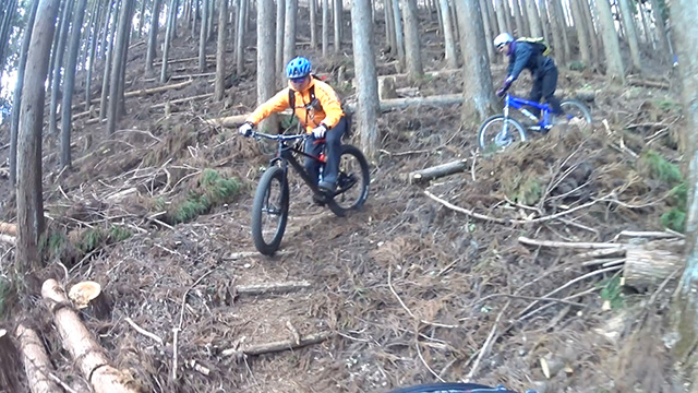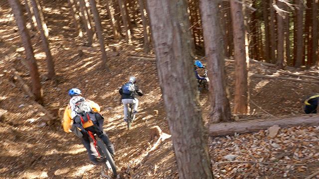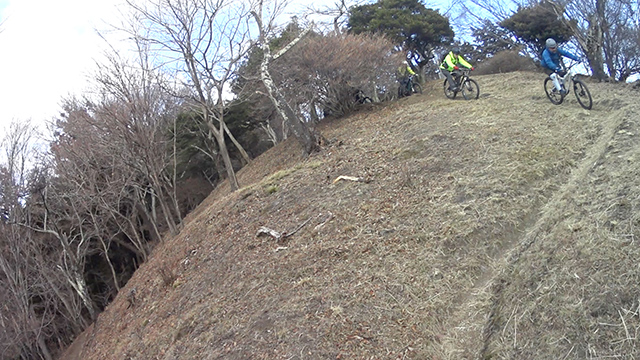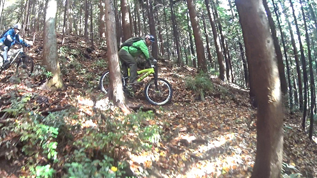 午後の部は表参道で始終快走できる高速トレイルになる。こちらは純粋なシングルトラックで皆勇んで進むので、調子に乗り止まれないのが本音で迎え撮りが不能になる。ピーク気温3度で寒かったに関わらず中盤以降は皆デッドヒートである。あれだけ急いで皆よく転倒しなかったものだが、当方自身が終盤V字ドロップで岩盤に突進横転する始末。あぁ所詮先導は危険箇所へのテスト要員なのだなぁ。