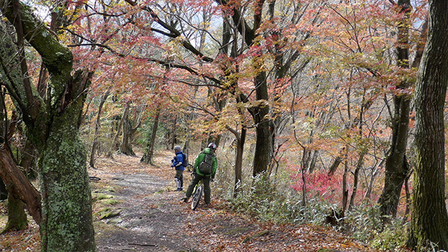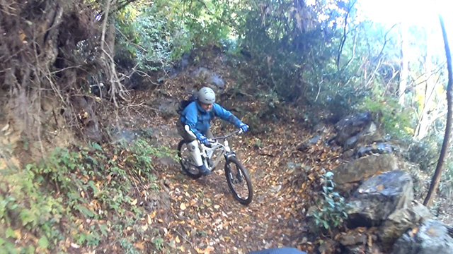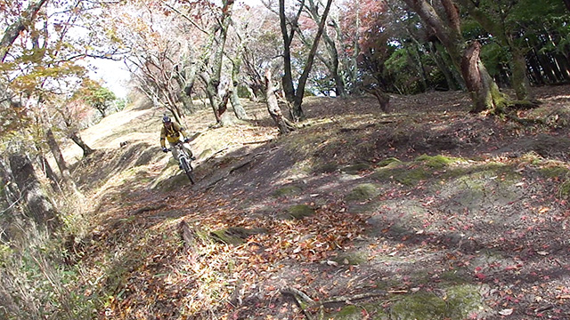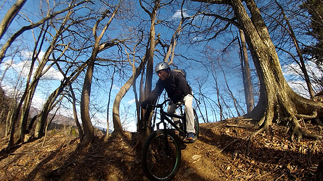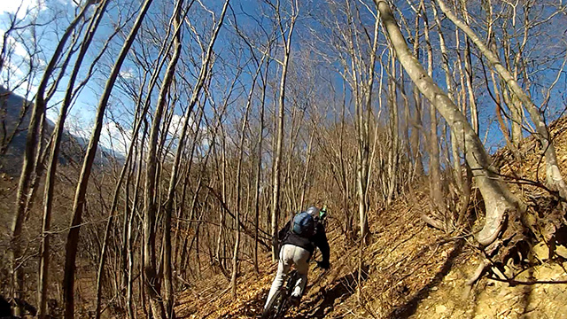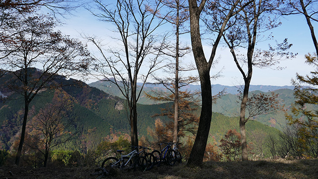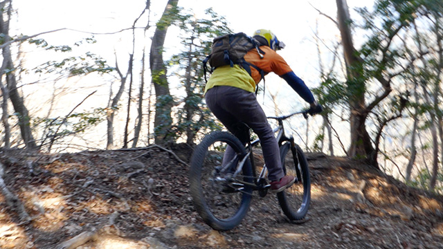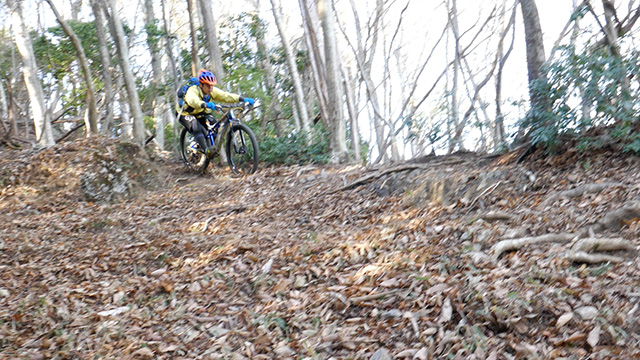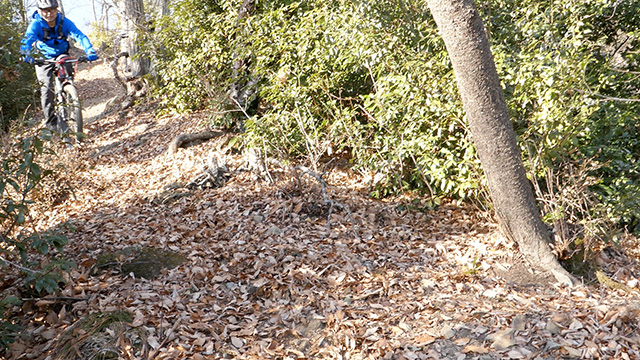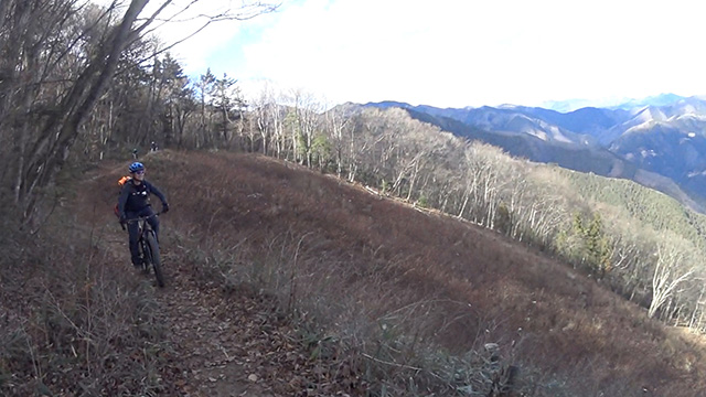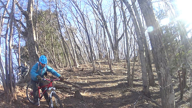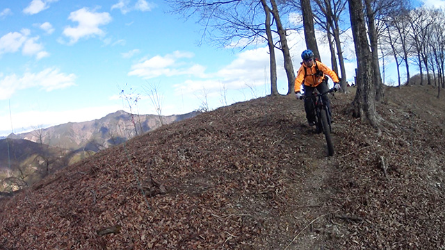 12/17(日)は有志YZ君リクエストによりに彼にとって未知なる尾根へ出向く。爆走隊3名様合同にてもう少しで山梨の尾根導入まで登りつめる。この尾根はかつての仲間とよく訪れたいにしえの古径。しかし冬場に来ることは少なかったため落葉による明るく開けた情景に感心しながらペダル踏み行く。またよく乾いた路面なので根張りも滑らず地質も踏み固められており非常に走りやすい。やや登り返しもあるが夏の蒸し暑さより脚がよく回る。前回も久しぶり縦走だったがこちらは5年ぶりだった。
