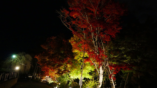 午後からは同尾根西方峠より再降下を開始。水はけが良い腐葉土道は全く雨後を感じさせず、さらに機運を高め猛進。各位難所にハラハラしながら慌て、次々と苦楽を繰り返すのである。「そうそう、この気持ちを得るために諦めずに来たのだ」と勢いよく駆け抜ければ集中力が増すようだった。誰も倒れることなく進んだのであった。帰路夕刻には近隣寺院にて燃える勢いのライトアップ紅葉を拝め季節の美を頂いた。今日は勤労感謝の日。「よく働いて、よく遊ぶ」のが我らの重要な課題なのである。