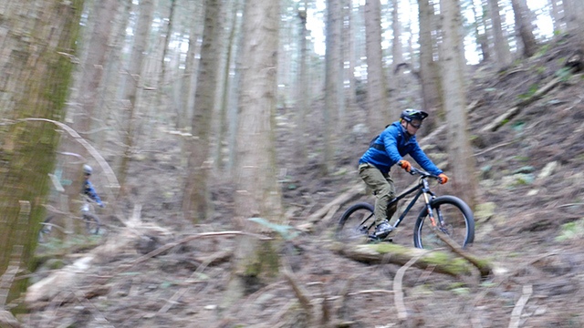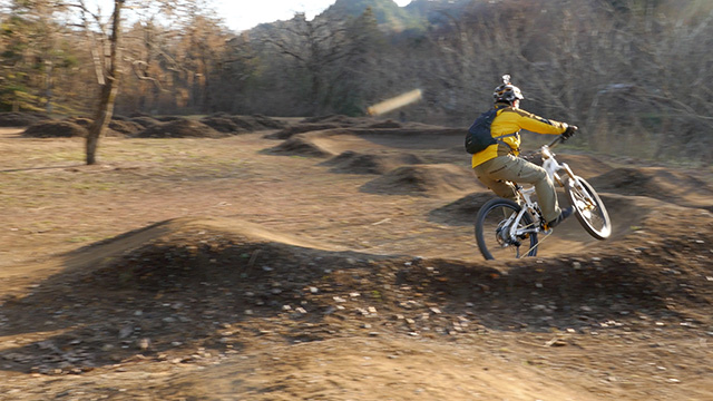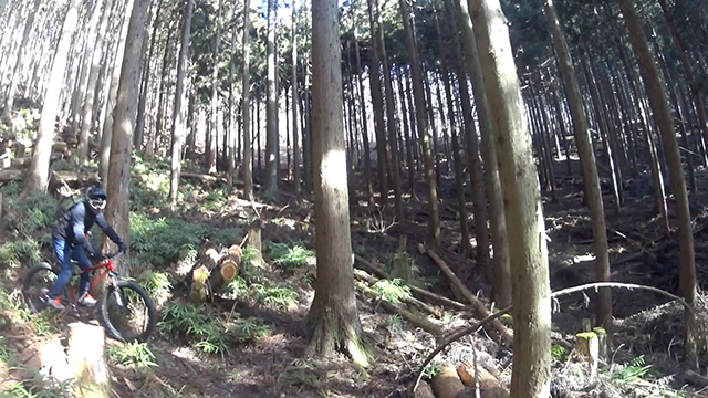 行く手に登り返しも多々あるが、それぞれの降下は思うより荒くクリアできると爽快になる。苦楽を繰り返すたび「己は生かされているなぁ」という実感が湧いてくる。食事処はお気に入りの笹の原より眺望できる天然テラス。虚脱感とともに寛げた。終盤は同尾根最強根掘りエリア。まるで道路工事の空気圧ハンマーを打ち続ける勢い。ある者は立木突進や大前転で果てる。いよいよ森の先に明るい穴が開け解放ゴールに導かれれた。皆きっとクタクタにはなったが充実感の方が増し心地よかった。まだ日が高いのでH君お仲間で開発された近隣のパンプトラックに招聘される。滑らかながらも6周位周ったが結局始終プッシュ・プルな愉快な1日だった。
