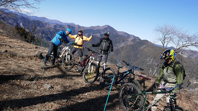 さて1/3初走りは気温0度の奥多摩頂より遠方に富士山を望み自由降下と相成りました。果敢に駆ければ寒さもなんのその、激降下・超痩せ尾根・眼下絶壁巻道・連続根張りなど変化に富んだトレイル巡りでした。はしゃぎ過ぎて顔着・連鎖転倒・落葉底なし沼・スポーク連続崩壊なども併せてやけくそで楽しめました。我ら活動は所詮少数派ですから、自ら活かし楽しみを共有するには同志の協力が欠かせません。本年も皆様のご支援により有志の繋がりがより深まれば幸いと存じます。