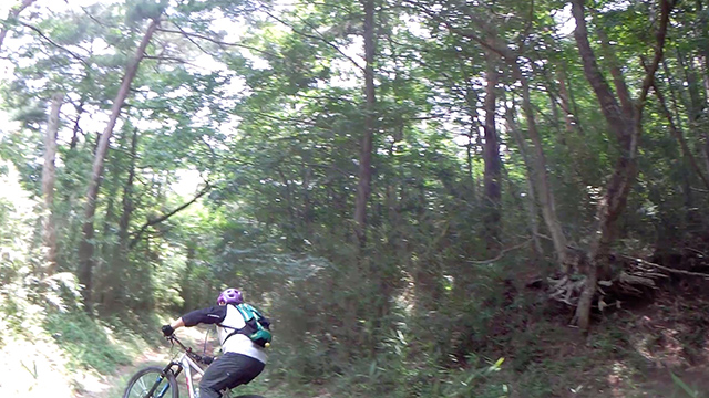 9/16(土)に奥武蔵辺境の隠れトレイルに6名集結。不安定気候が続き思うように集えなかったが、この台風迫る3連休初日に鬱憤晴らしたく皆テンションを上げてきた。雨雲レーダーを察知しながら行動計画を練るが、弱雨が舞ったり予想をつけがたく運を天に任せ第一降下する。導入から未開な風情なので皆戸惑ったろうが、一応に山バカレベルが高いので放置で先導していく。森深いルートなので路面濡れは無く悠々と駆けた。雨雲の存在など忘れ縦横無尽に往くのだ。