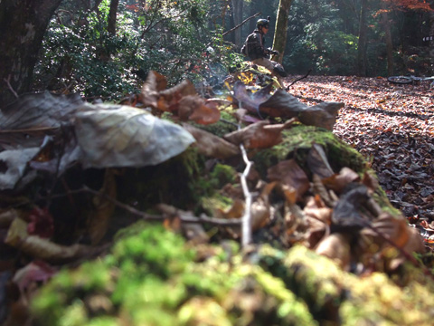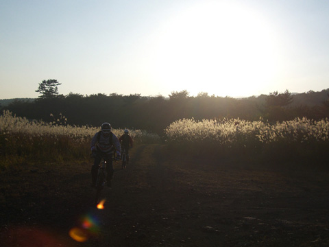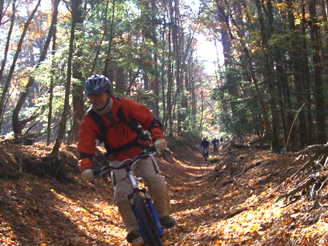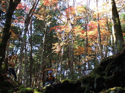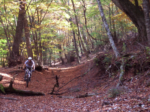 初盤から活気ともにきりりと風を切り、引力に身を任せ身震いするほどの歓喜を味わう。秋の当山は初参上だが中盤からは紅葉萌ゆる赤・黄模様が頭上を舞い飛び優雅に思う。木漏日さす落葉の道は暖色で明るく先を示すのだ。ガムシャラに駆ければ半袖でも良い程の気候に恵まれた。およそ25kmは駆けただろうが、盛夏より断然心地良かった。そして元来同志7名は山バカ治らずだと笑いながら確信したのだった。