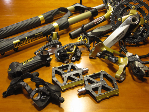 昨連休中11/23までに新購入・特製・部分変更含めバカーボン号装備9品目が我が作業場に集結。外した不要パーツは弊隊員の若輩君に進呈する。そして一式組み上げるのは直ぐできるのだが、しかし本体フレームのデザイン・リファイン+再コーティングに時間が掛かる。重ねてこれからの業務繁忙期に従い余暇時間の制約有。