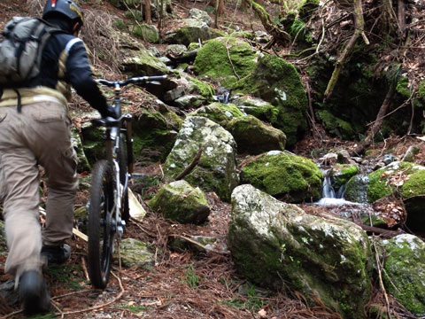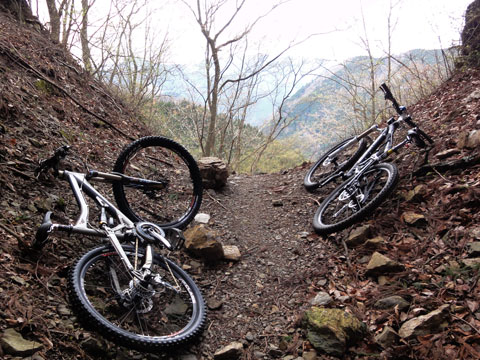 昨連休前4/24の魔境山・裏参道にて絶壁巻道を駆けた映像なり。それは山上稜線ではなく、二つの山の谷間を駆け下る道。大勢で往けば誰かがきっと犠牲になるくらい痩せているのである。頼もしき相棒⇒【nodasyu氏・WHITE OUT】は登山家だからこそ高所も大丈夫だった。そのうえSPDで駆けることにも呆れ驚く。快活に駆ければスリルもまた楽しきことなり。