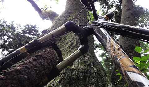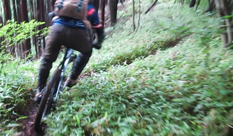 しかしだ縦走する尾根上部は濡れ気味粘土質。各位まるで押し出されたトコロ天の如く滑り落ちる。四苦八苦で中盤ではみな学習したか、逆ハン・ドリフト状態で器用に下っていく。果敢なアタックで崖下に愛車転落させた【ROAM:Dera氏】は苦にもせずトラブルを楽しんでいた。登り下りハイポテンシャルの【ARMADA 自転車部:やました氏】は初山ながら動じず駆ける。ハードテールのクラック入りも忘れツカカツ氏は弾けまくり。初登場・ベロロ軍曹氏も奮闘し駆けるが全くめげず問題なし。ハイテンションなドタバタで、あぁ雨期の憂いもどこへやら。難有れど夢中になれる暴走スライダーな山往きだった。