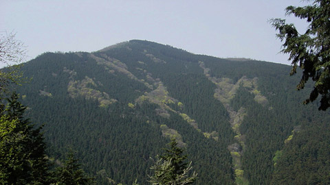 8/28(土)一番奥の奥武蔵山系950m峰へ。当山へは久しく同行 ⇒ナタジゴ山自転車隊の初走行なので迷わぬようにと随行となる。麓の里では朝から猛暑だったが、尾根上稜線は一帯広葉樹なので良き日傘となりドライで27度位。また真に広葉樹林が涼しいわけは「空冷式エンジンに着く冷却フィンの役割を葉が担うから」であろう。と説けばエンジニア諸氏は即ご理解。晴れ続きで初走りには幸い、路面は乾ききり軽快に進む。昨今登山ブームであるが、しかしそれは人気山だけに集中するのだろう。当山ではガラガラで占有し自由に駆ける。