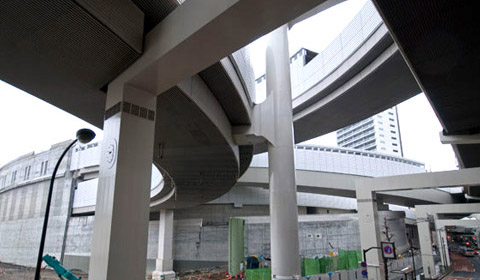 先週末の遠征山行きにて今春出来た首都高・中央環状大橋JCTを通った。そのスタイルは従来クローバ型でなく上下線W重層ループ構造になる。それを国立競技場規模の円柱ビルに収め、また屋上は緑化公園になり用地有効活用するらしい。レインボーブリッジ等ループ橋などは馴染みだが、インドア多重スパイラルは他に無い。ループ3周回し高度70m下り地下高速に結ぶのだが、無意識でいると長いカーブトンネルとしか思えないだろう。1分も回り続けエンジン音が響くなか、また2車線あり並走車がいたら怖いもの。