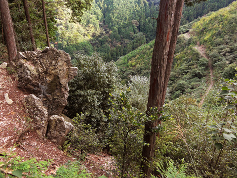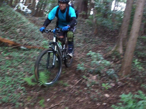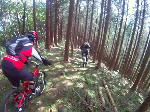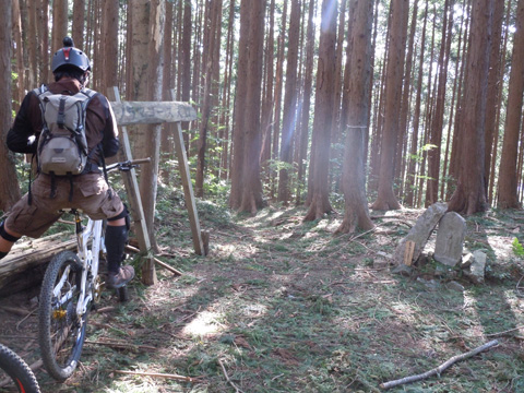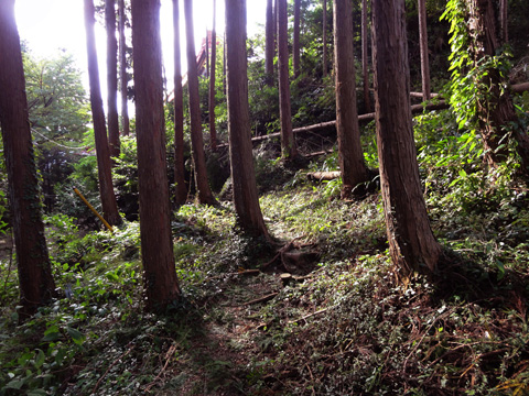 しかし昨台風が過ぎ残した爪痕は予想を越え激しく。細い掘割り道はやたら溝が掘れ土砂が流されたようだ。やや走れるようになれどホイールに落枝刺され、斜面に積もる杉の葉枝は驚くほど滑った。また倒木くぐるリンボウ大会も始終開催。