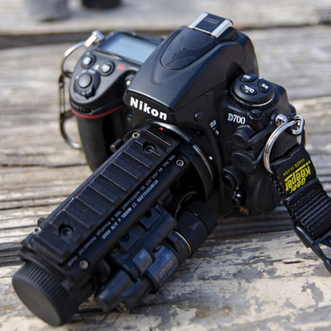 ミリタリー関連調べをした流れで偉容なレンズを仕込むカメラを見つけた。これはヘッドカムではないが、米海軍が低照度条件で用いる野戦場撮影ユニット。この暗視装置Nightstalker IIとNikon D700を組合わせている。動画も撮られるが、暗視状態ではピント合わせAFが効かないので手動合わせになる。絶対銃器と間違えられそうなこのモデルは、民生品としてのカタログモデルなどもちろん無い。