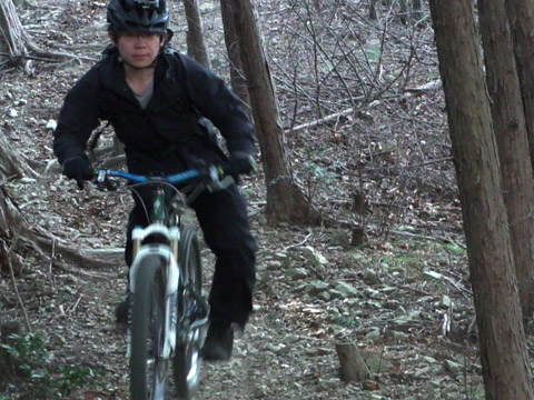 やがて日も差し通常トレイルに差し掛かれば、これまでのうっぷんを晴らすよう皆早馬状態。もう注意慎重さに欠けトランス状態で駆けるようだった。リハビリ走第二弾であるICOの秘密:icofit氏も新鋭サス換装したそうで、それも問題無しでご本人満足そうだった。