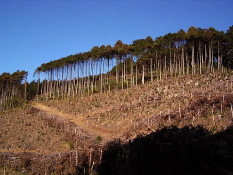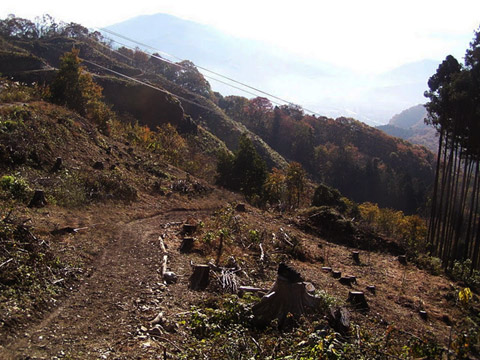 そして尾根後半は熱帯雨林→大竹林と異国間の植生を抜けるように行く。ここまで随分別れ道を分けたが皆はてや記憶出来ずという。いよいよ終盤は大伐採地帯に新たに現れた作業道降下になる。それは林間→伐採と繰返し縫いゲレンデDHのような豪快さ。残りのアドレナリンを出し切り活気昇華させるようなフィニッシュとなる。この縦走は新年初走りで快活スタートを切るに相応しい山行きだった。