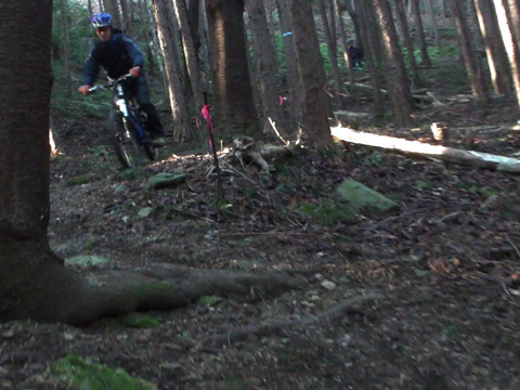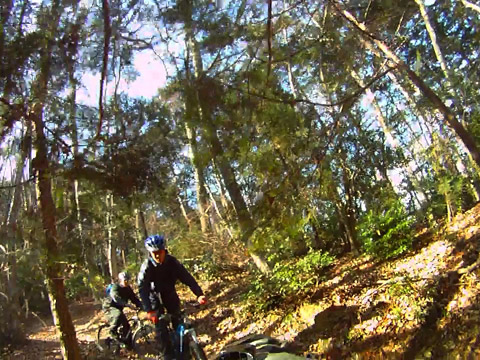 そしていよいよ頂上からの降下では落葉下ギャップに驚喜しては順調に勘を戻して行った。幸いにして上着も薄手で充分であり、始終雪を踏む事は無かった。少々山径分岐を違えようと転落しようとも彼らとは十年来兄弟的な縁でリラックスし気を使わずにすむのだ。しかし難所降下アッタクへと煽ってもこの三山巡りでは昔より慎重になってきた。彼らも「攻め守りをしっかり見極める人としての成長」を果たしたのだろう。とまあ今回は過大評価することにしよう。
