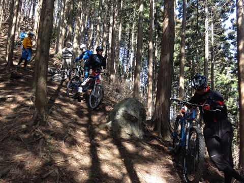 のどかな雰囲気とは裏腹にここからの降下は険しい。本日初見諸兄は全て1ヶ月以内にSNS等でお声がけ頂き、また弊Blogご贔屓方であった。なので当活動形態は承知されており、それではとお構い無しに皆様ともに乾ききった傾斜をずり落ちる感じ。快晴にて木漏日コントラスト激しく路面凹凸と見まごうほど我らをだます。皆様大した度胸と喜び感心するのであった。