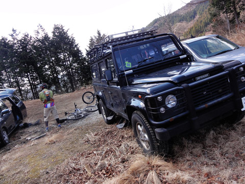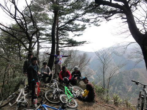 4/1台風一過のようなこの日曜、快晴で空気澄む気候に恵まれた。本日は全員がDIYフェンダーを装着し春の激山に挑むのである。そしてたまたま湖岸で知り合えた単独同業者のMさんを言いくるめ我ら山バカ行に同行してもらうのだが、そのフレンドリーさにも関心した。