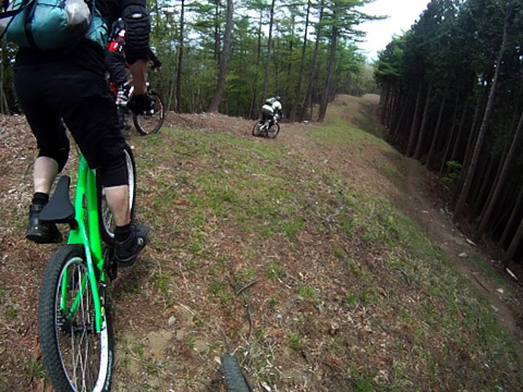ここは3年前来た以来でその頃まではゴール側よりピストン行で降下していた。なのでスタートからいきなりの凄い傾斜に皆ワクワクし、人の踏跡カーブをはみ出しながら落ちていくようだった。快晴で行く先は明快だが路面乾き過ぎでスリップをせぬよう集中した。豪快な稜線防火帯は4km続くのだが愉快に進むので記憶ともに早回しである。