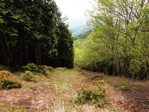 尾根の中間地点までくると以前とは違うコースマークがあり真東でなく南寄りにルート変更がされていた。唯一ファインディングした箇所だったが、これも東から迫る延長林道のせいで登山道が分断された結果だった。後半980m標高からは通常の林間行になるが広葉樹林は明るく我らをいざなう。軽快に進める道は素晴らしいのだが、深く掘れたアドベンチャーな根の障害物も増えたように思う。