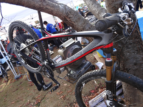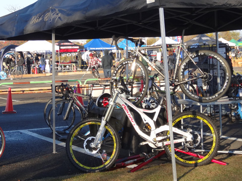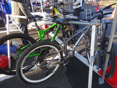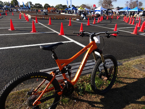 75ものブースを自由に見廻るうち同行者とは一旦離れたものの後に迷子になったり、しょうがないので2013Newフルサスモデルに7台位試乗しコースを巡る。やはり個性あるリンケージ構造別に乗り換えると各工夫を面白く比較出来た。同行者より後で聞くにDHプロ軍団が来場されたようで、なんと選手同士トラック中央でサイクル・ポロのデモに興じていたようである。遅く来たのでアウトレットアイテムも残り少なくがっかりだったが、多くのサイクルファンの積極行動に気概を感じた。2時間余りの観覧だったが、やはりアウトドア展示の方が清々しい気分で見れるものと思えたのだった。