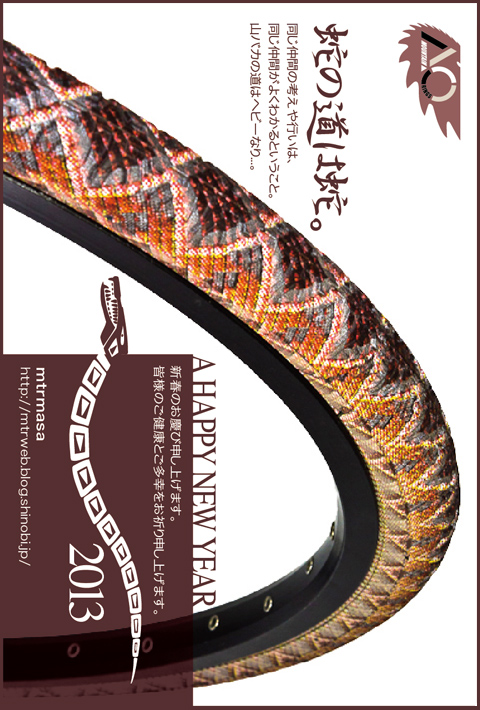 新春のお慶び申し上げます。旧年中は当方主宰活動に賛同頂けた同志38名のお陰で、通算21回山岳を駆け巡る事が出来ました。しかし例年に比べて恒例映像である[クラッシャーズ2012爆走転倒列伝]では派手なアクションは減りました。それは数々の動画記録が復習材料となりスキル向上に貢献したのでしょうか。幾多難所での見栄張りライドは適切な精神統一効果を与えたのかも知れません。