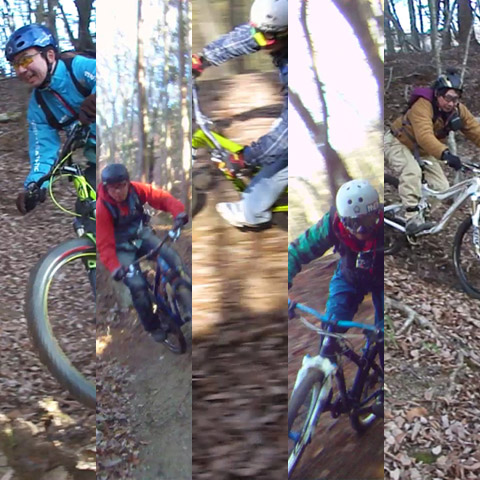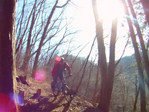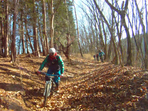 3/13奥多摩辺境へ3ヶ月ぶりに参上。この尾根はかつて峠越えに使われた旧道。しかし現下沿うように林道が敷かれ登山者にとってはバリルートに成り果てた。よって我々に好都合なのである。久しくも落葉の様に驚き定点比較しても違う山のようだった。その見通しで調子良く進むが側の緑が無いだけバンク&バームが「うねる」よう際立ちスリル増すもの。次々それに呑まれ皆果て往くのであった。