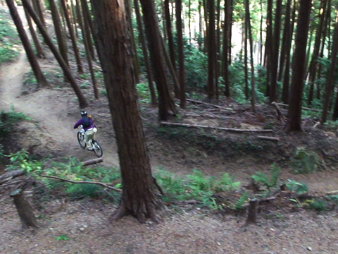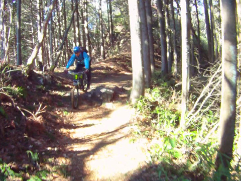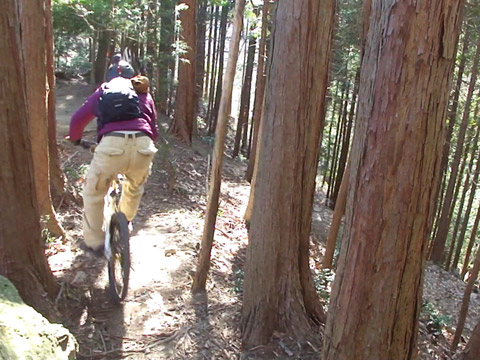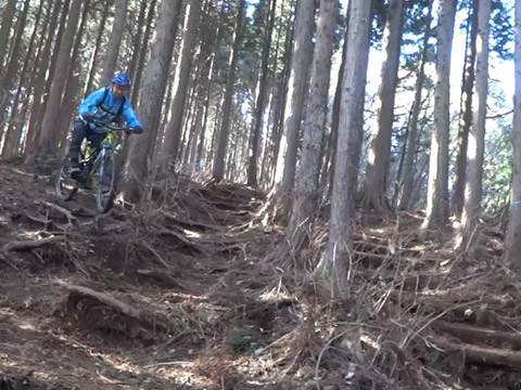 本来後半もこのメインの稜線末端まで進むかとも考えたが、5年ぶりくらいにかつてエスケープ道として用いた支尾根を覗きたくなった。快調に下る事は記憶に有ったが、路面はキレイに払われ水捌け工夫までされ、タイトだったトラバースもやけに広がり林業道のごとく整備されていた。東京山道は道標設置しかり多く改善されていると思っていたが、こんな末端ルートまで登山ブームの恩恵が浸透していると感じた。おかげで調子に乗った二人は狂ったように転がり出す。大スリップしてもズッコケても再度のアタックに興じる。それは少人数での良い面だろう。昇り降りで3時間山中で過ごすが達成感充実のゲリラ活動だった。