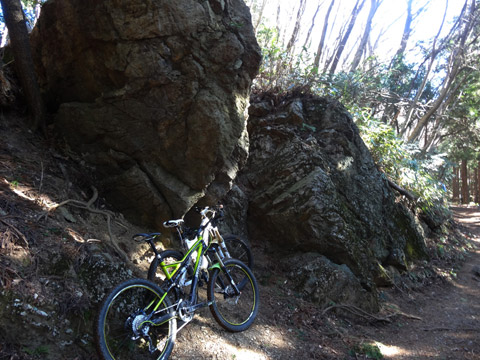 2/3(日)奥多摩山系中核あたりのピーク900m級からなだらかな尾根を往く。たった一週間前の奥多摩湖側は残雪激しかったが、こちらはすっかり無くなっていた。日射が強く気温も高まり拍子抜けに快調に進むが、メインの稜線は小春日和を求めてのハイカーさん方が多かった。快晴での挨拶はやけに明るく感じた。我らの目指す核心部は後半の寂しいはずの尾根なのだが、そちらまでにも人々は押し寄せるのだった。まとまった方々に先に行ってもらえるよう自分達は尾根上小ピークに幾つもせり上がりアタック降下でやり過ごす。距離の割には登り降りを繰り返し、同行AI君の新ドロッパーポストも大活躍。その効果に大納得の様子だった。
