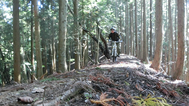 2、3年ぶりにやってきた当山道は落枝・倒木が相当増え動体視力も追いつかず、各位要所でショック受け声を上げる。しかし中盤に差掛かり体もほぐれ勘が戻った頃から有頂天に変わる。初夏の常設コースで大怪我負った諸兄にはハードなリハビリ降下だろうが、察するに「これだ、この感じ。行くぞイケイケ。」と心中唱えるように笑みも増したのだろう。背後のハイテンションをしっかり感じた。