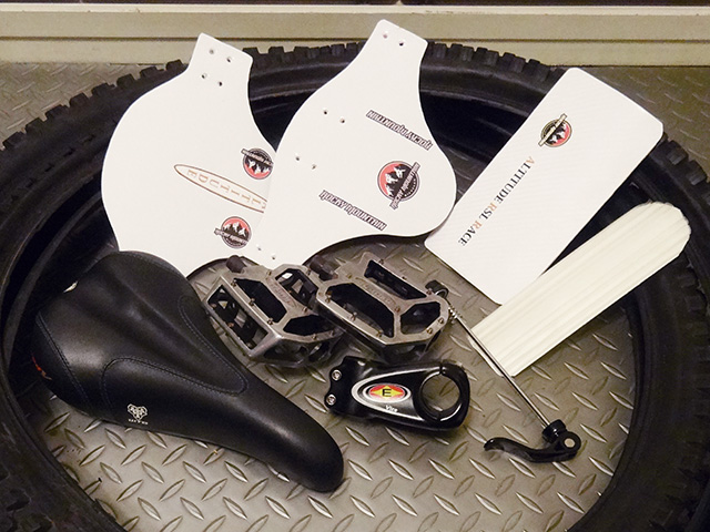 ★ストックアイテム:1.KENDA Nevegal 26×2.35タイヤ/2.Easton VICEステム/3.WTB Rocket V サドル/4.gurungGR フラットペダル/5.スキュワー クイックレバー ★工作アイテム:1.フロントフェンダー/2.リアフェンダー/3.チェーンステーガード/4.ダウンチューブガード