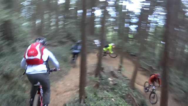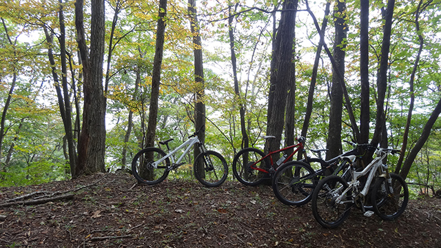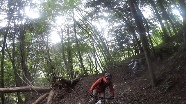 尾根上標高1100m超は雲中で寒かったが、以降やんちゃを抑え気を引き締め駆け出しヒートアップ。久々登場の▶︎【ARMADA自転車部】君 も近日投入した新鋭Stantonオールマウンテンを操り、このテクがいる初ルートでさえ意気揚々と駆けていた。行く先々難所あれど皆度胸だけはある面々なので何もへこたれず自由に駆け巡るのであった。