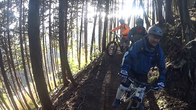 昨11/12奥多摩W-DHツアー敢行。雨後湿り気コンディションで万全ではないが、双方とも乗車率100%の快速トレイル。時より湿気った葉に乗りワープしたり、埋もれた枝ぶり・落石につまずき相当に忙しい径路である。こんな状態ではトラブルはつきものだが、山の神は我らを解放された。風の子4名は勇んで落葉を巻き上げ駆けたのである。