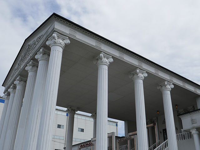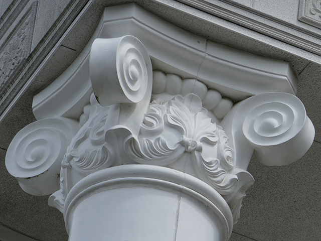 ↑柱のエンタシス上のコリント様式装飾をワイド端で見る。