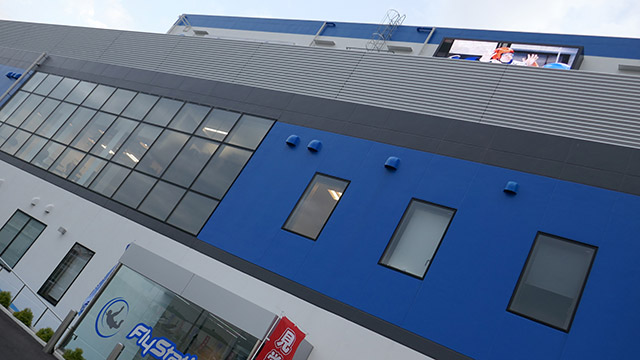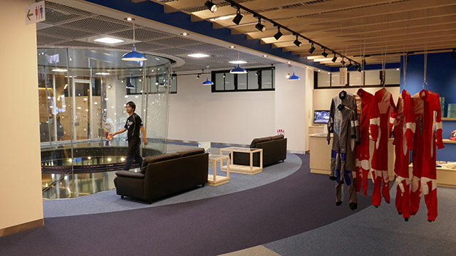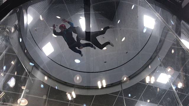 今春4月埼玉県越谷市にオープンしたインドア・スカイダイビング・スタジオの【Fly Station】へ8/26取材見学に出向いた。日本初の当施設は外見が工場のような様相だ。メイン設備の縦型風洞は時速300mの風を吹き上げ人体を舞い上げるのである。さぞ大騒音であるかと思ったが「密閉型循環式ウィンドトンネル」最先端技術採用で思いのほか静音である。貸与されるダイビングスーツに着替えたらインストラクターよる事前講習がある。 スカイダイビング経験がない人、子供でも年配の方でもプロのサポートにより短い間に飛翔できるようだ。