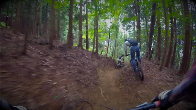 昨9/16奥武蔵辺境のマイナー古道・巡視道にて。台風当日降雨前に急いだので初走行貴兄はきちんとルート把握できただろうか。待撮りも休息も出来ず、皆が暗雲に煽られたことがありありと写っている。午後までに3ルート15km駆けた乗車率100% 興奮率100% ファイト一発的映像完成。