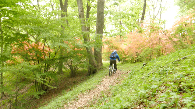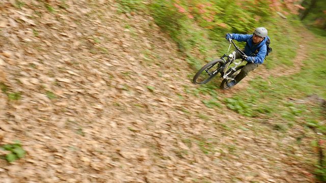 昨4/30北武蔵方面の高原地帯を巡り降りた記録。700m標高に登頂するが山名が地図記載されぬのに広大頂部で眺望は素晴らしきかな。次の峠までは広葉樹若葉が清々しくツツジ群に魅了され遠征観光に来た気分になる。峠からはハーフパイプ(掘割)スラロームが延々と続く。迎え撮りが絶好なコーナリングが多く、大人数で来ると急停車でのおカマ堀りが予想されるだろう。勢いに乗り止まれないので、3度も登り撮り直しをすることになった。マイナー山でこれほど愉快なトレイルはそうはない。同山系トップクラスの痛快ルートであった。