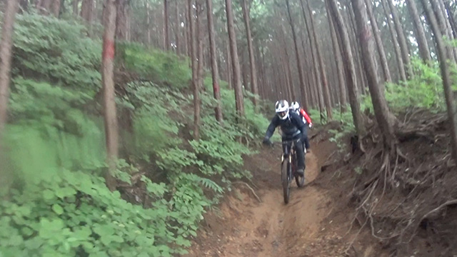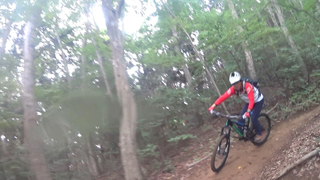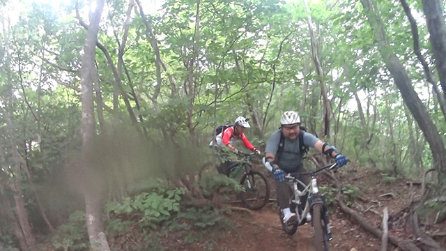 6/23は午後過ぎから降雨予報であった。雨季で走れぬ日々続きジレンマ解放のために北武蔵辺境に向かう。久しく同行の4名で第一座は800m超頂上まで押し担ぎする。気温は20度と低いが高湿度で発汗とまらず。ピークからは北方に降りだすが、準備運動にしては激しすぎテクニカルなクランクが連続する。冬季は行く手がよく見えるのだが、グリーンシーズンでは曲がり先が見えず数々のトラップに驚く。