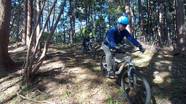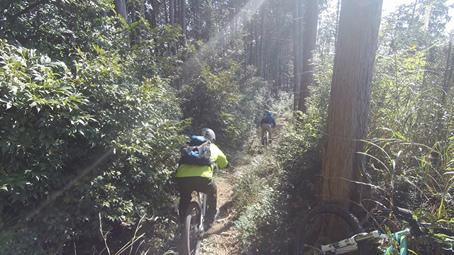 10/28は15年来同志のみで標高900m級山系に出向く。おそらく比企山域で最も広い頂部を有する広葉樹林はすでに紅葉を迎え大らかな心持ちで行き進むが、深い森の巡視道に差し掛かると風害枝散りがかなり多く障害物競走となる。一般登山道でなく整備はされないのだが、来るたびに状況が違いそのハプニングも楽しむのであった。DHのみでなく登り返しもありダブル・シングルのトラックを織り交ぜ長道程では対向の山並みも望める。鈍った体をほぐすには最適なルートであった。