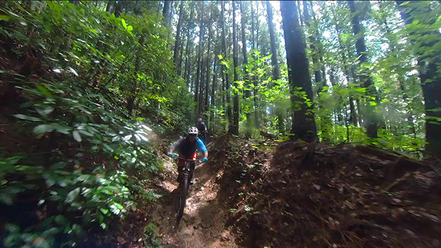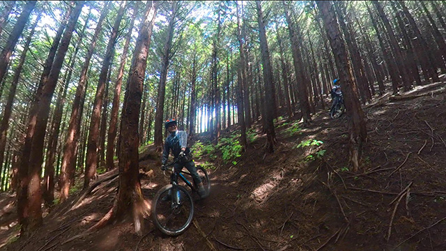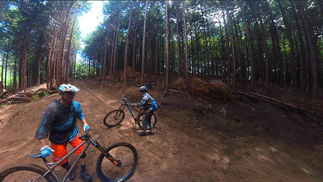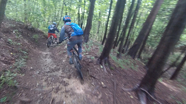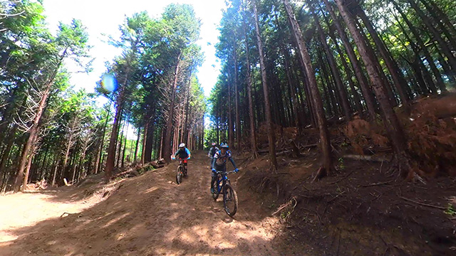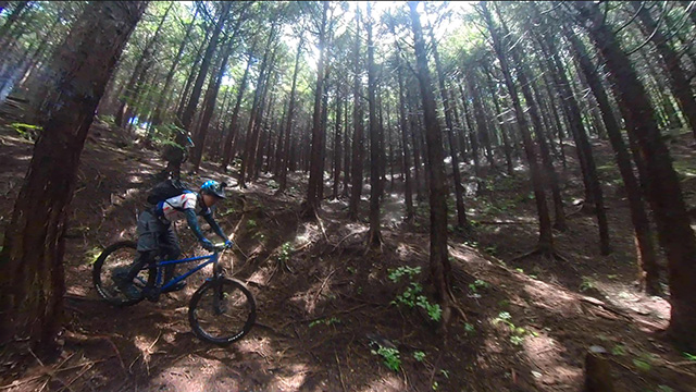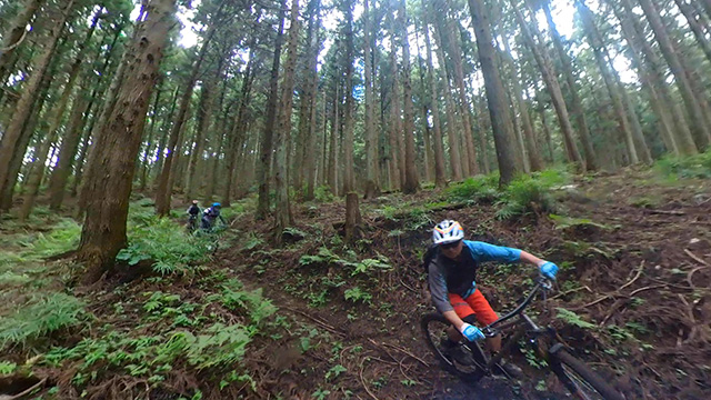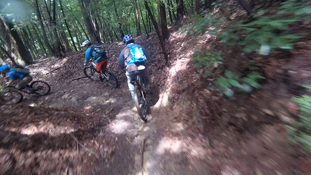 8/9は東秩父山系へ出向くが集合時雨天となり天気待ちとする。雨雲群の移動を見極め幾つも峠越えにて南西側へ移動。南側街道に着くなり雨も小降りになったが、深森林道なら走れるかと提案。800m峠まで登り返したところ晴間がのぞいてきた。林道に降り着くと路面湿りは僅かで滑ることなく。我らはその幸運に意気揚々と駆けるのである。トリッキーな斜面林に入ればどこでも走れるピンボール状態で各位忙しく戯れるのであった。