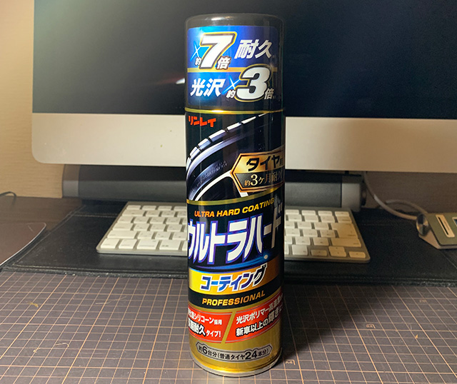 そして先週オーダーしておいた[リンレイ ウルトラハードコーティングタイヤ用:880円]が到着。従来のタイヤワックスとは違い塗るだけではない。タイヤ表面にコーティング皮膜を形成するような新しい仕様性能である。普通同2輪であるオートバイは内燃機に付着リスクがありケミカル類使用はご法度である。が、わがMTBは泥んこまみれでクリーンアップに手がかかるのでコーティング皮膜が気になり採用した。