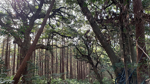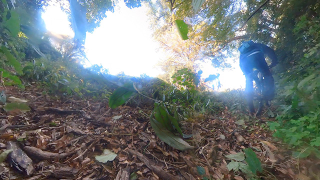 午後は尾根の真反対並行し佇む小尾根へ。頂上のスダジイ巨木を目指すが、また艶の葉で滑り押上げになる。人気はなく誰にも会わないマイナー尾根は藪も残り分け進むが傾斜は緩く容易に進める。間も無くピークに着き鎮座する巨木18本を仰ぎ圧巻にくれる。それら巨人からパワーを享受しひたすら浮遊感覚で降下し無事里に放たれたのであった。