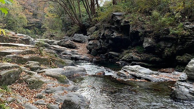 11/23比企山系・三山縦走の古径を巡る。尾根に乗り上げるとモミジではなくイチョウやクヌギの黄色落葉が多くおかげで路面は明るく照らされる。しかし艶のある葉が多くよくスライド滑りで驚く。山の適期であり虫も去り快適に進める。正午には里の渓谷で昼食を摂り水面に映る葉の彩りを楽しむ。