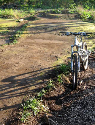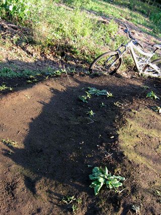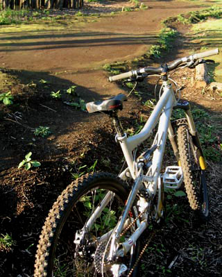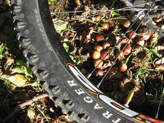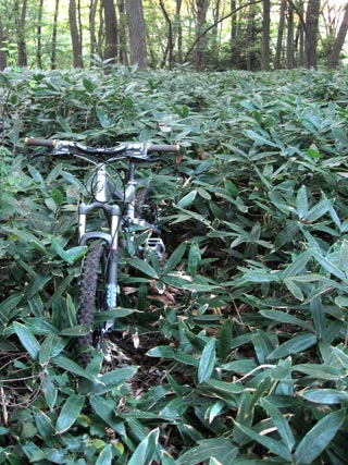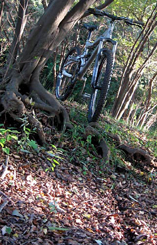 [→テストコースはコチラ10/21:倉掛尾根迷走 編]しかし担ぎ上げの際はちょっと大変。2.35のDHタイヤ+ヘビーホイルを履いているせいで、重い分だけ前輪が降れ動く。体・顔にタイヤがガンガン当たる。これでは開拓探索に不利である。どうにか軽量化せねば。帰りのクルマで算段してしまう。