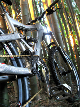 ▲XAM吊るしフレーム。それ以外のパーツが重いのが問題。重そうなパーツ3ブロック(ホイールセット/ハンドル周り/カセット)を確定して、交換するべきパーツを発注した。そしてそれを待ってる間に各部のカスタムを開始。