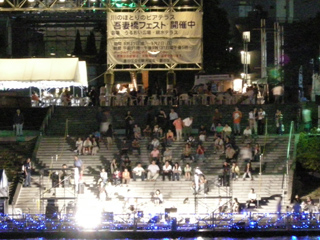 浅草の街をあとにして吾妻橋越しで開かれる墨田・野外ライブへ出向く。「イッツ・オンリー・ア・ペーパー・ムーン 」「オール・オブ・ミー」 など夏の終わりの風にあうジャズスタンダードを岸辺で聞けた。