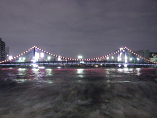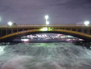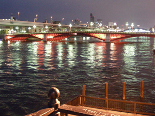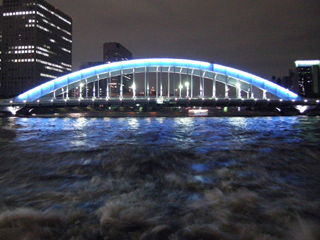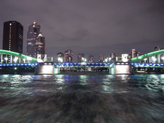 そして定期便最終ボートで夜のクルーズに乗り込む。東京河川ではひときわ個性のあるのが隅田川に架かる橋の数々。それらをくぐっては、一つひとつ名前を思い出しながらカメラに収めた。